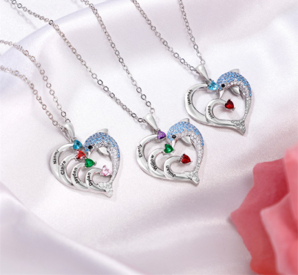 Personalized Heart Dolphin Necklace